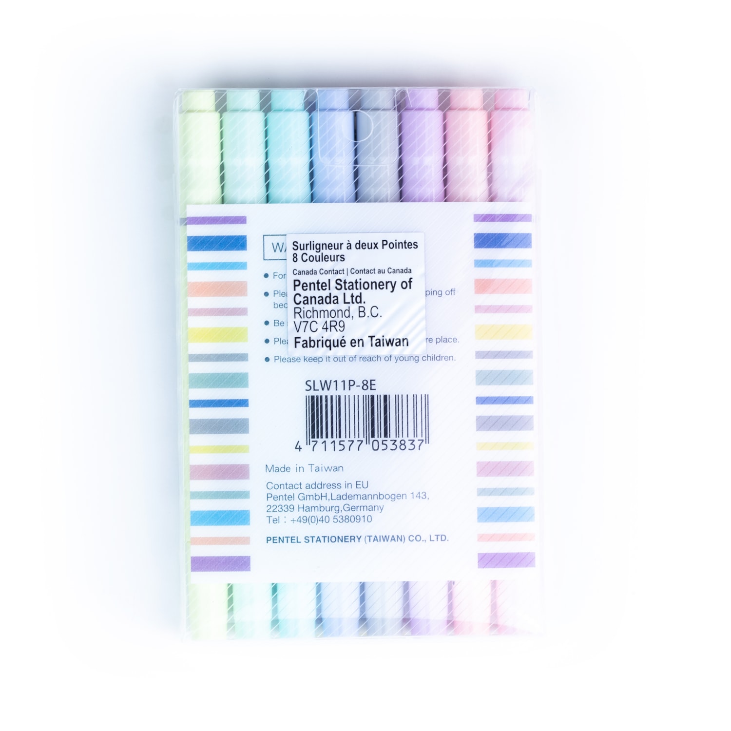 ست 8 رنگ ماژیک علامتگذار2 سر پاستیلی پنتل مدل Pentel SLW11P-8E